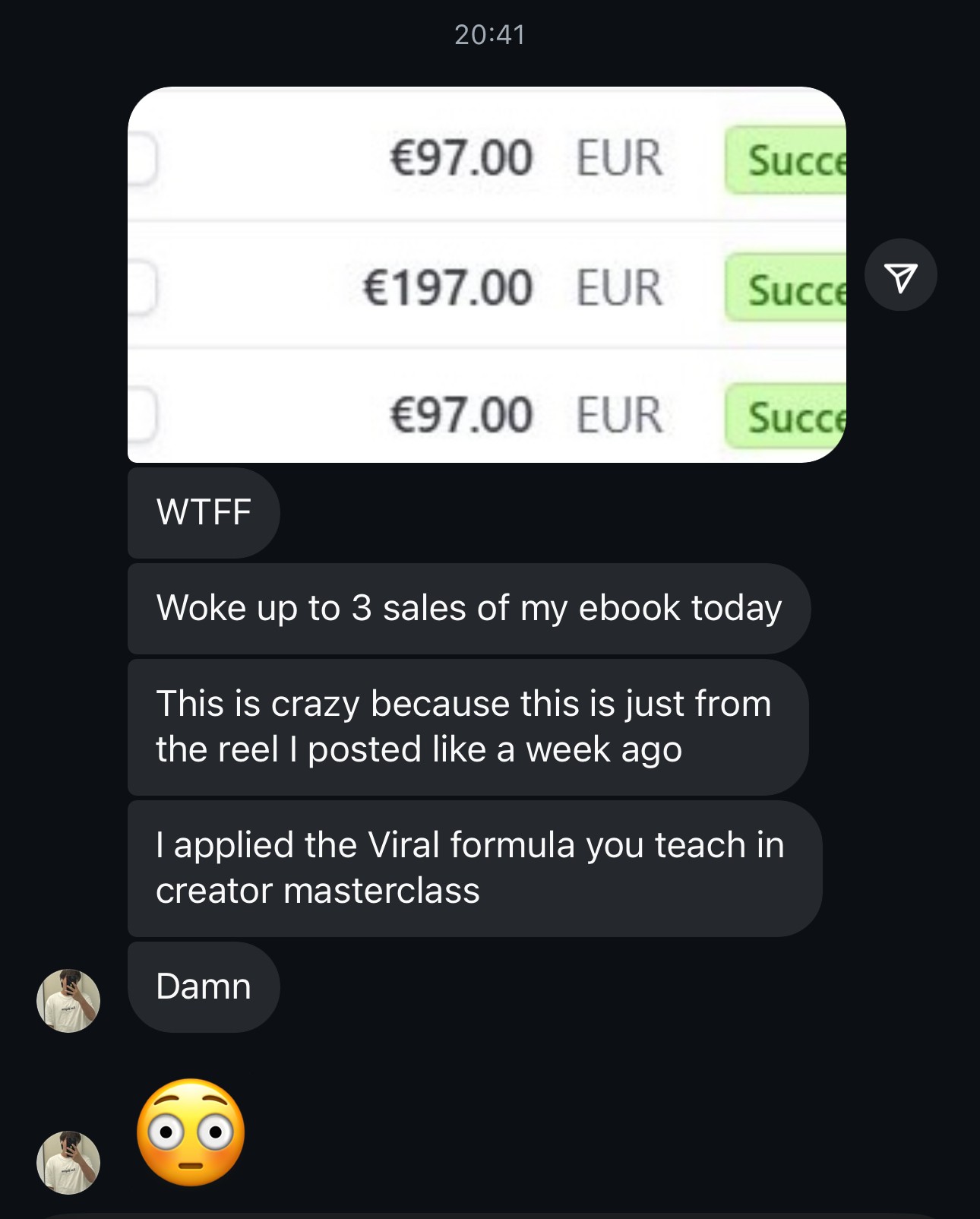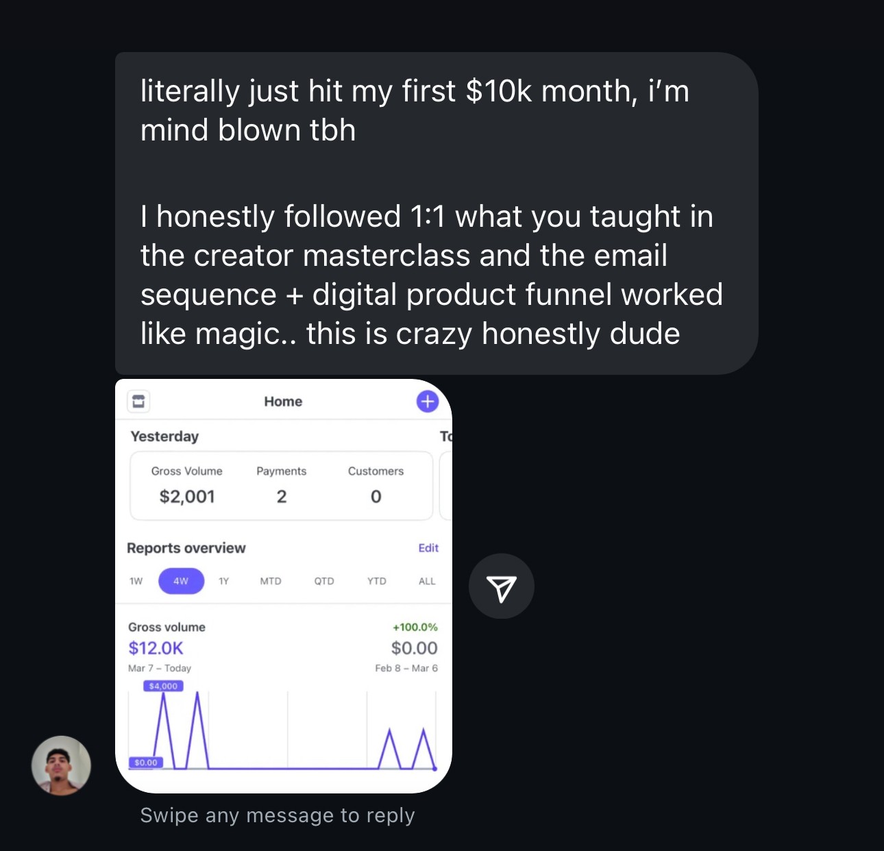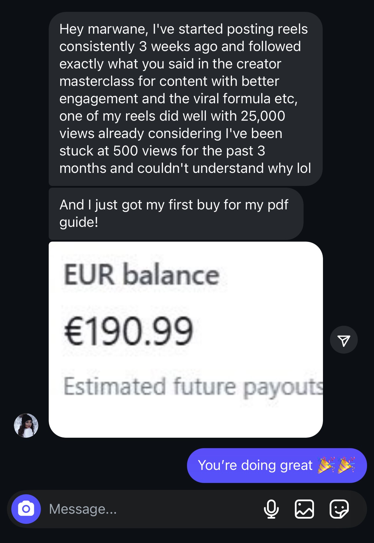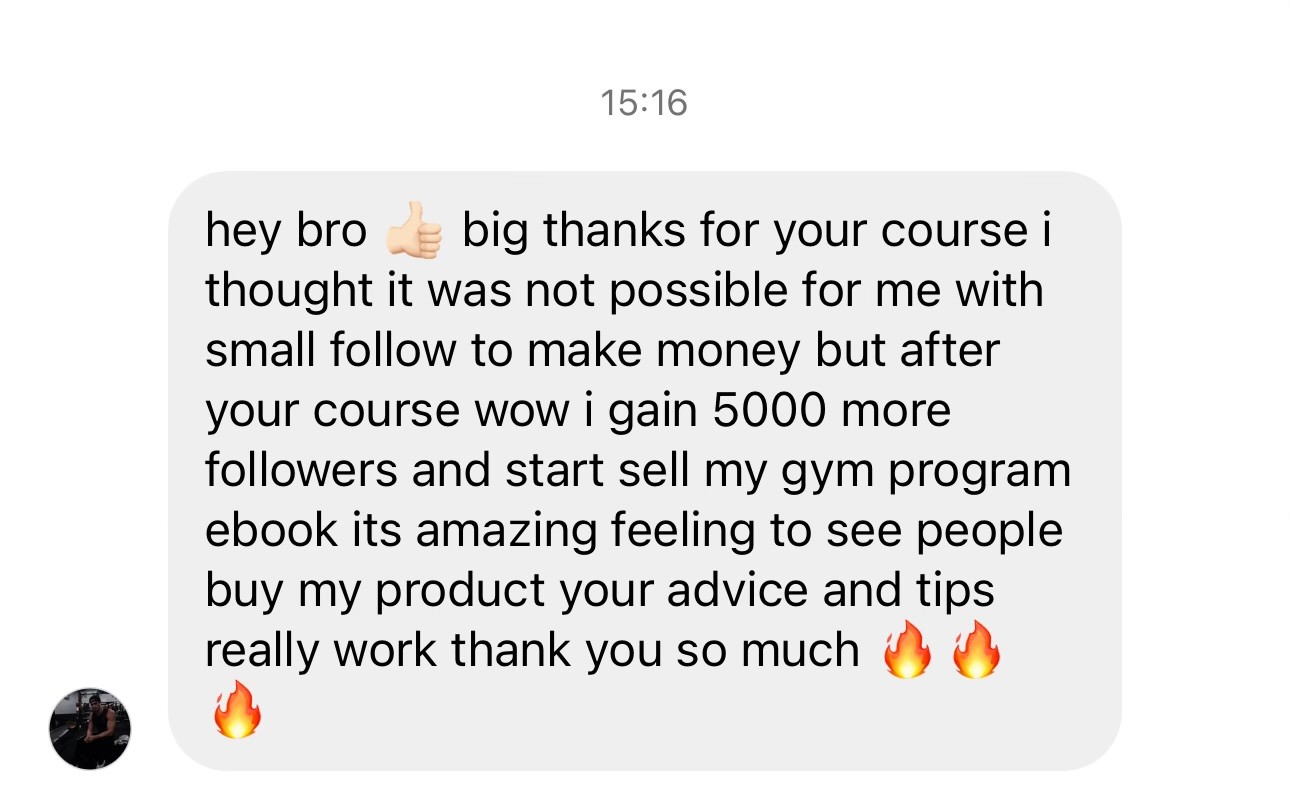 The average conversion rate is around 1–3%. This means that with just 1,000 followers and a $100 digital product, you could realistically generate $1,000 to $3,000 in revenue. With just 4 or 5 sales of your digital product, you’ll have already covered your investment of The Creator Masterclass. This isn’t just an investment. It’s a cheat code.